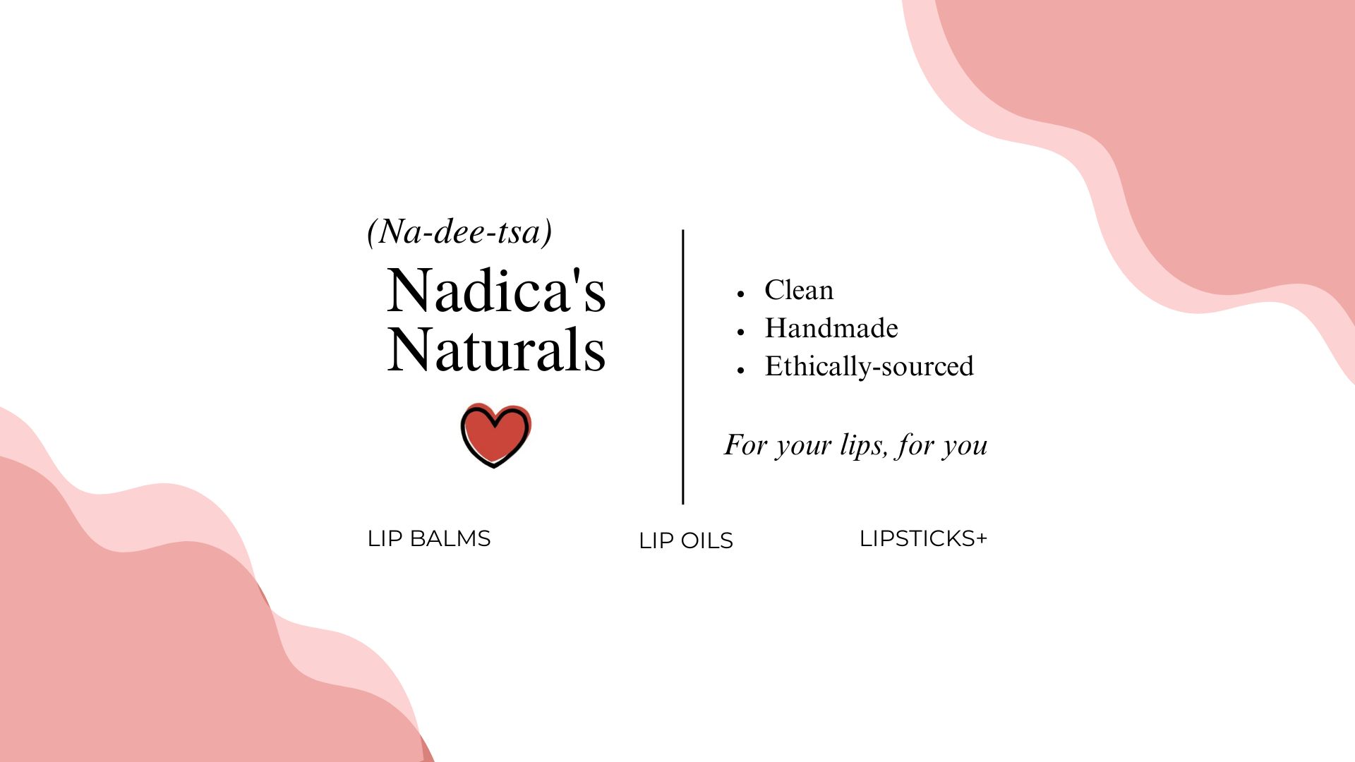 Nadica's Naturals is a shop that specializes in handmade clean and natural lip cosmetics. Nadica (Na-dee-tsa) started her business because she was tired of discovering toxic ingredients in the makeup products she was buying. She only uses natural and clean non-toxic ingredients so that every product she sells is safe for the skin and for the environment. Her ingredients are also ethically sourced so that you can feel good about using her products while looking good too!